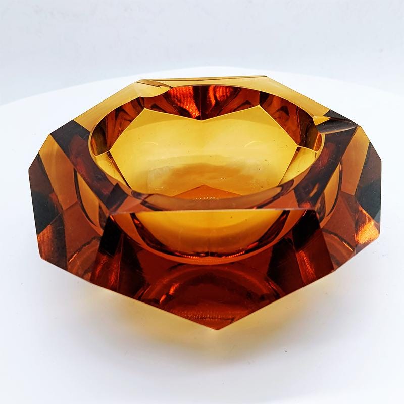1960s Amber Multifaceted Ashtray or Catch-all in Murano Glass. Made in Italy.
