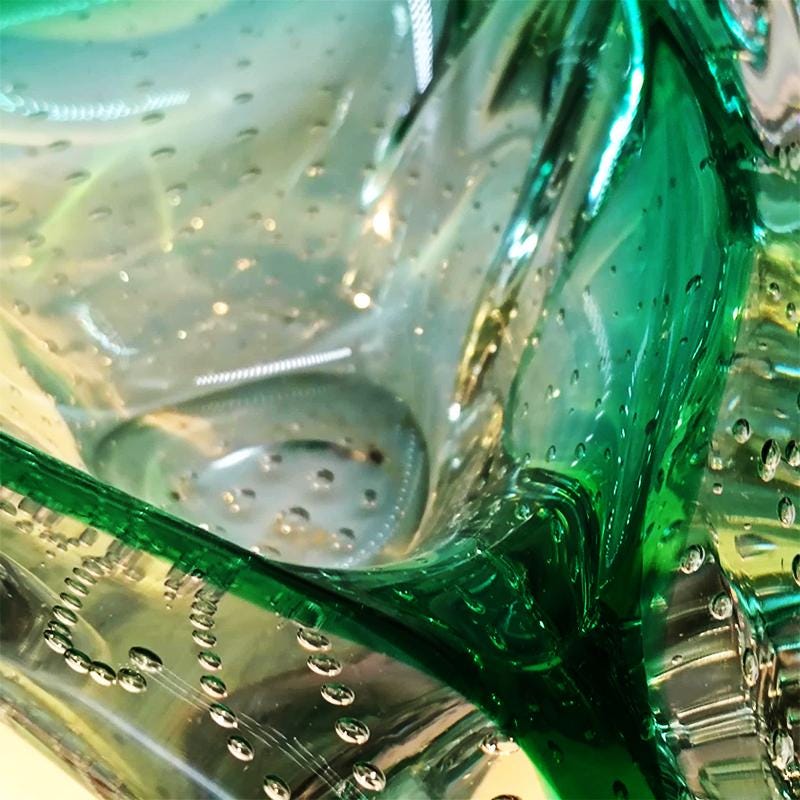 1960s Big Triangular Ashtray or Catch-all in Murano Glass with Air Bubble. Made in Italy.