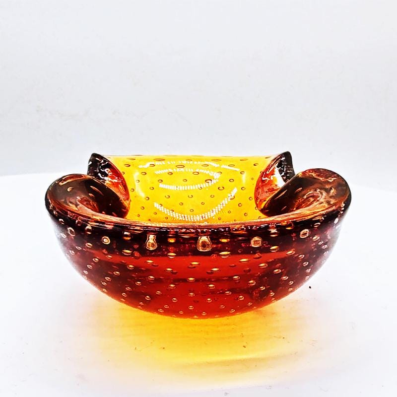 1960s Little size Amber Ashtray or Catch-all in Murano Glass by Flavio Poli for Seguso. Made in Italy.