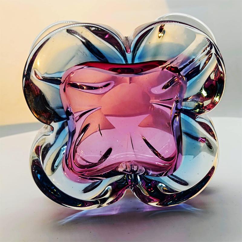 1960s Stunning Pink and Sky Blue Ashtray or Catch-all in Murano Glass. Made in Italy.