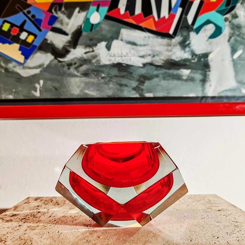 1960s Stunning Red Ashtray or Catch-all in Murano Glass by Flavio Poli for Seguso.