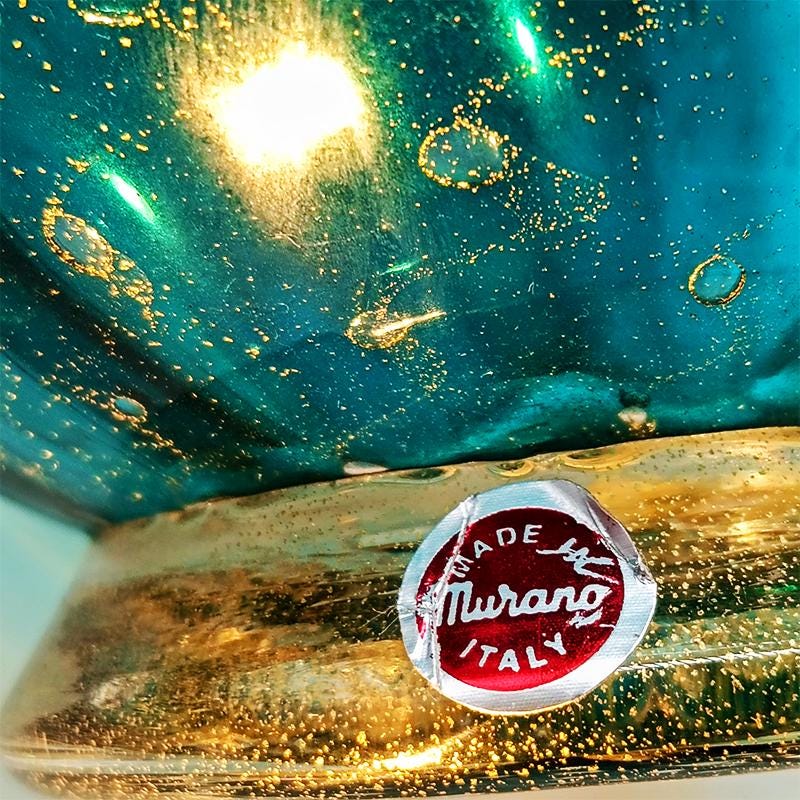 1960s Turquoise Vase / Centerpiece in Hand Worked Murano Glass with Gold colored finishes. - Made in Italy.