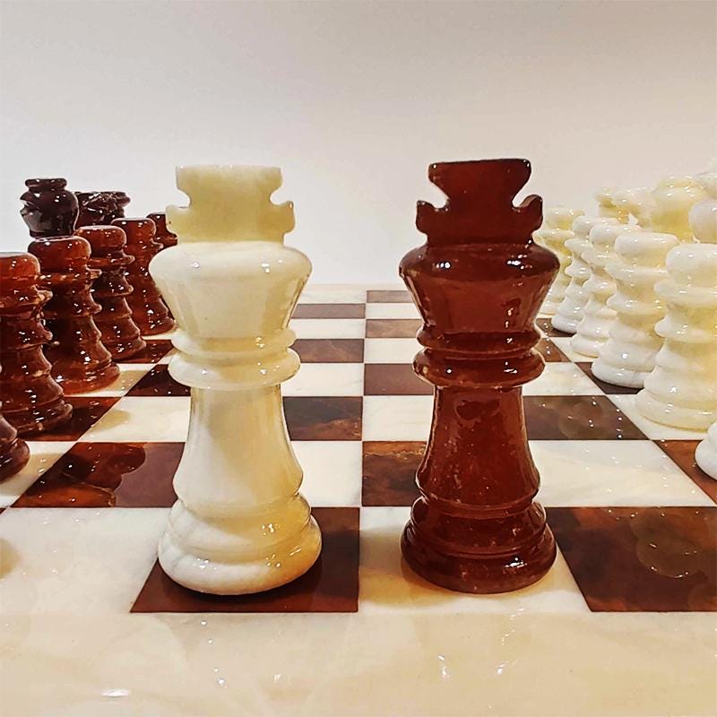 Vintage Chess Set in Hand carved Italian Alabaster of Volterra.