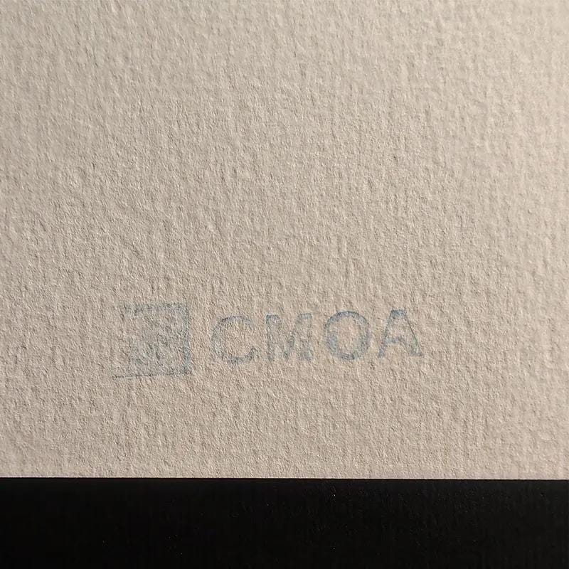 Limited Edition of 500 Numbered in Pencil with the Original Publisher's Stamps (CMOA Carnegie Museum of Art - Pittsburgh) impressed on the front and back, Original Blind Stamp on the back CMOA, Holographic Authentication Stamp