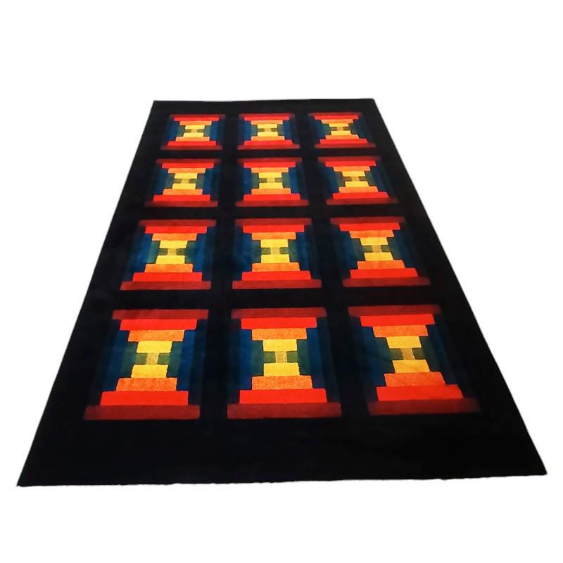 1980S Geometric Rug "Country" by Missoni for T&J Vestor in Pure Wool,