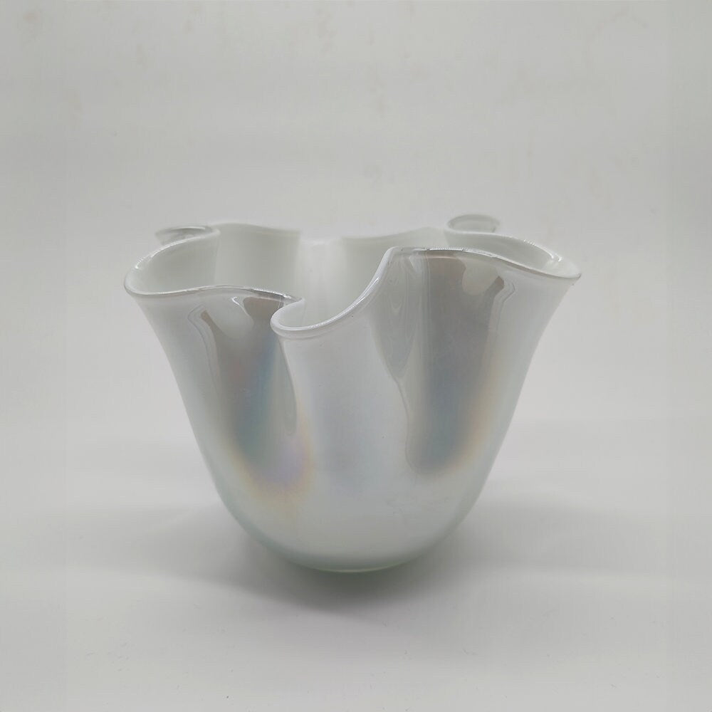 Vintage Jacketed Pearl White Fazzoletto Vase in Murano Glass - 1960s